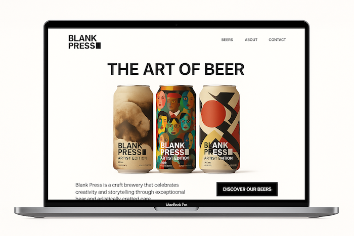 I brainstormed name ideas with ChatGPT but ultimately chose Blank Press, a name I had already been circling. It was inspired by minimalist design, collectible print culture, and pop art influences. I added the tagline “The Art of Beer” to reflect both the literal and conceptual themes behind the brand.