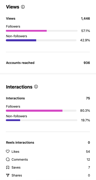Across all content, views increased 158% and interactions rose 123% over three months. Every improvement came purely from organic posting.